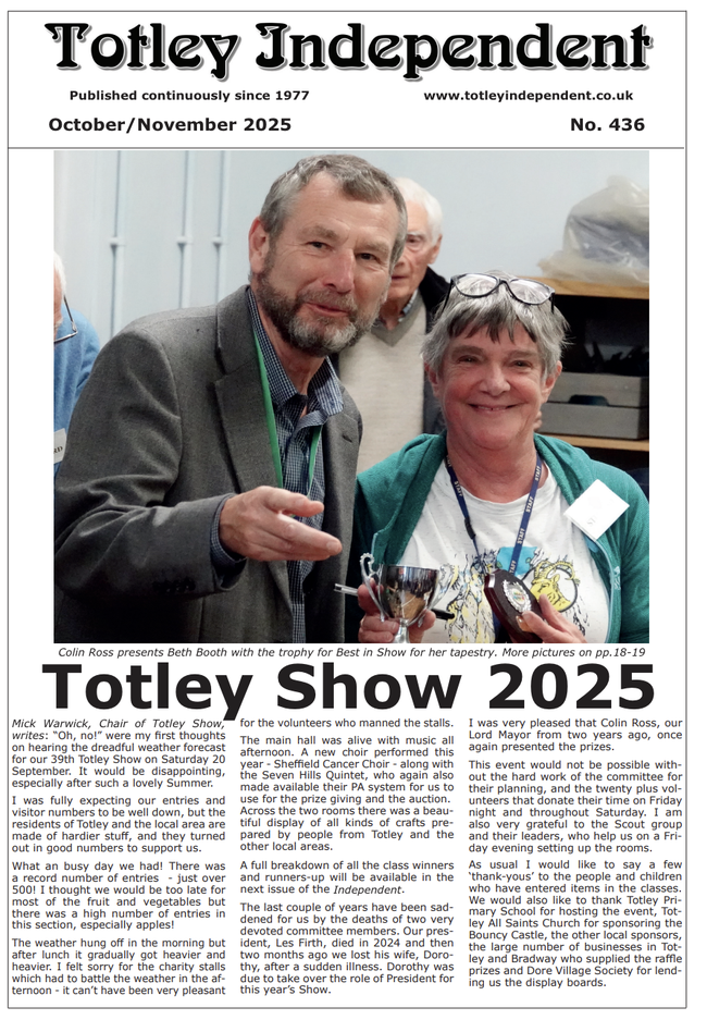 Totley Independent is the community newsletter for Totley. Totley is a suburb of Sheffield, South Yorkshire, UK. For more information see Totley on Wikipedia. Totley Independent was first published on 4th July 1977.
