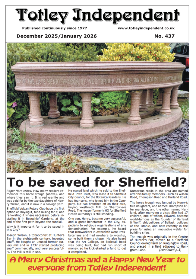 Totley Independent is now a free distributed magazine to most Totley homes (from the April 2021 issue no.409). It can be picked up from several local retailers, pubs, cafes etc. see Distribution for more details.